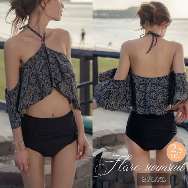 ホルターネック ビキニ レディース セクシー フレア 水着 花柄 ビキニ 2点セット セパレート ハイウエスト 花柄 水着 リゾート水着女性 水着 上下セット 大ぶりの花柄が圧倒的な存在感を放つホルターネックセパレート水着2点セット! オフショルデザインなのでデコルテラインをすっきり魅せ、背中も大胆に露出させ、女性らしさとセクシーさをとことん発揮! 大きめのフリル付きで気になる胸元を隠しつつ露出度を控えめにするのにバストを大きく見せ、メリハリのあるボディラインを作り上げてくれるスマートな水着 素材: ポリエステル85% ポリウレタン15% カラー:ブラック サイズ:M/L/XL トップバスト:約74/78/82cm アンダーバスト:約64/66/68cm ウエスト(ゴム仕様):約56/58/60cm ヒップ:約66/68/70cm 商品詳細: ・パッド付き ・パッド挿入不可 ・アンダーバスト調整不可 ・補整機能:なし ・カップ:あり ・ワイヤー:あり 裏地:なし 伸縮性:あり 透け感:なし 生産国:中国 ※すべて平置きサイズです(採寸方法違いより、多少の誤差がございますので、ご了承ください)。 ※海外輸入品のため、商品の細部仕様は多少異なる場合がございます。予めご了承の上、ご注文お願い致します。