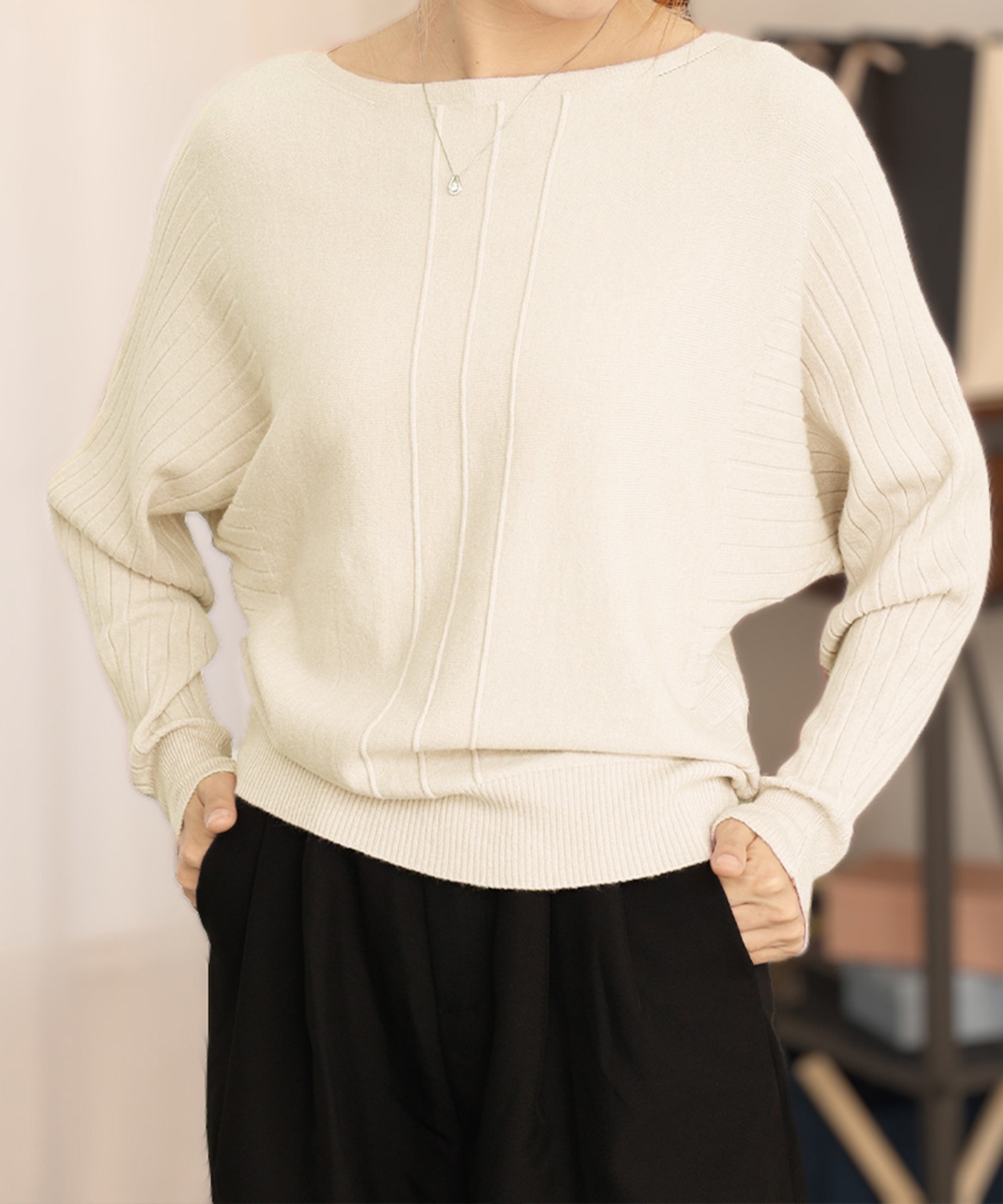 セーターボートネック ドルマンニット きれいめ薄手プルオーバー 柔らかい ニットソー ベーシック着回し通勤 着やせニット