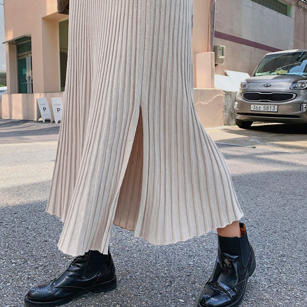 裾に向かって優雅に広がるニットプリーツスカート
