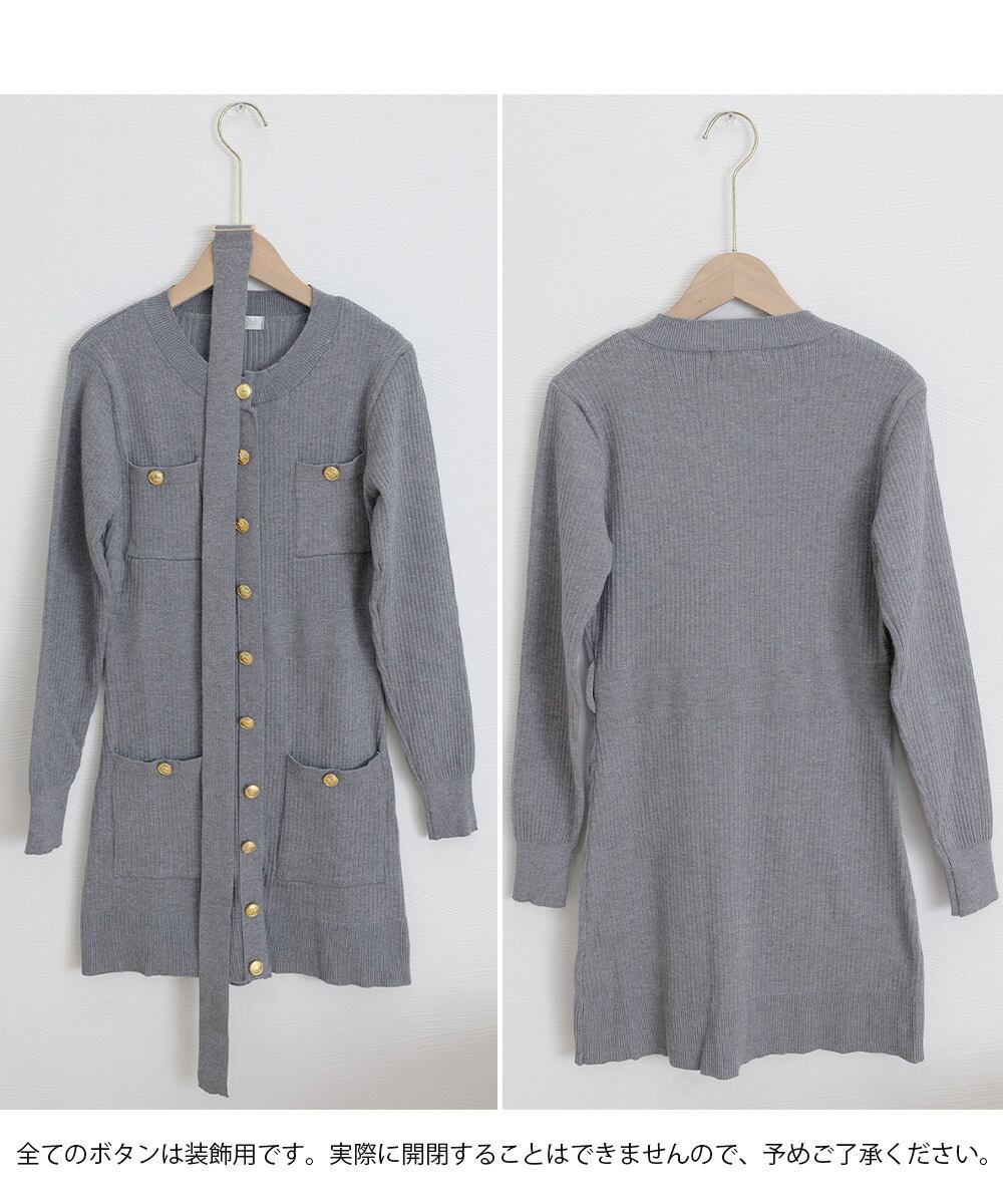【日本倉庫即納】 ミニニットワンピース ゴールドボタン上品