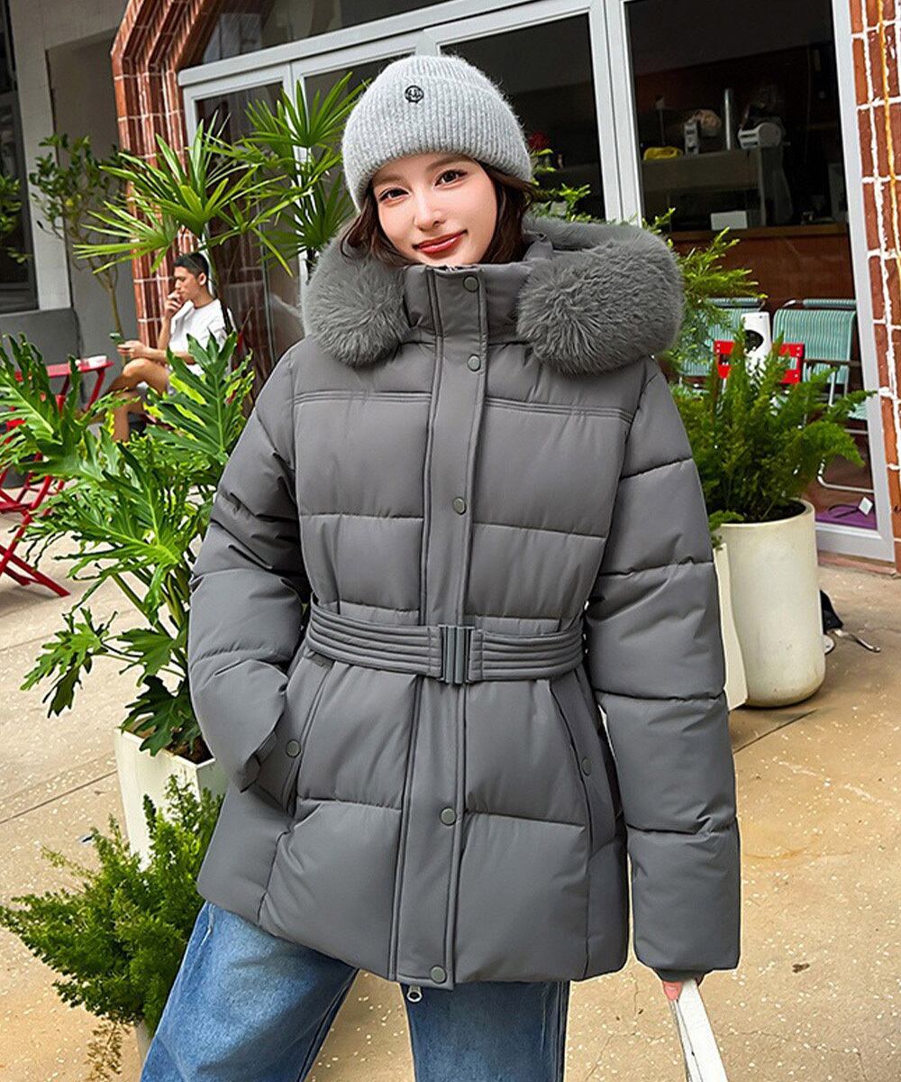 ウエストベルトでメリハリが生まれ、着膨れしにくいバランスに整う。