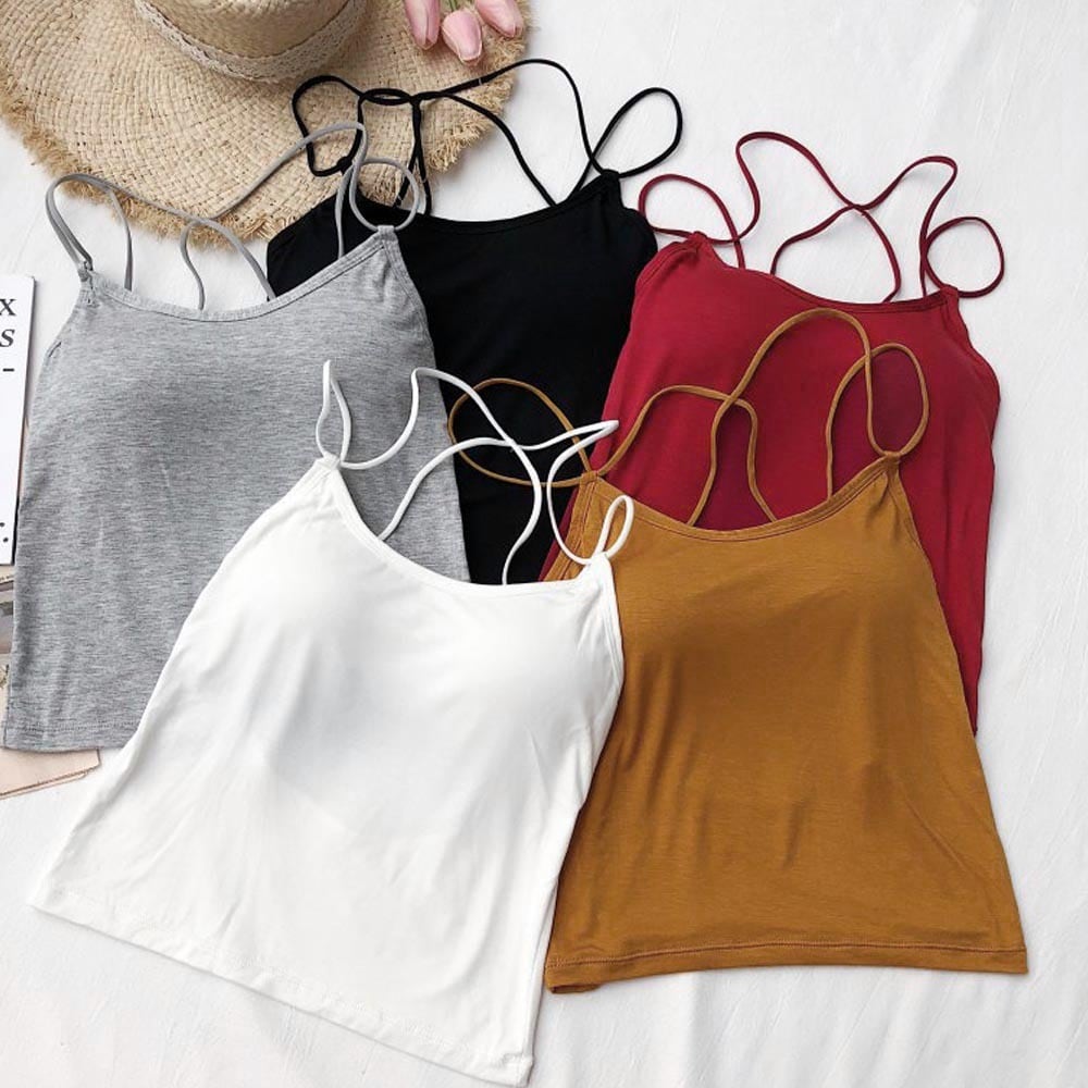 シンプルながらもおしゃれなバッククロスストラップの背中見せキャミソール