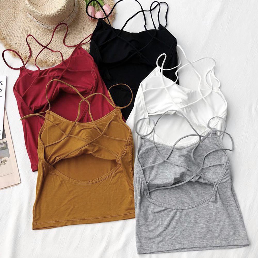 背中あき キャミソール パッド付き バックオープン バッククロス キャミソール