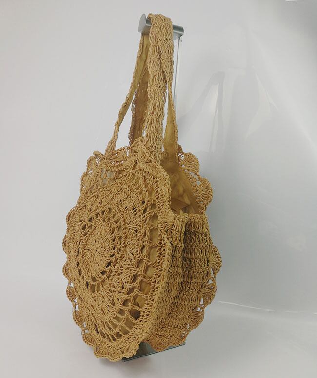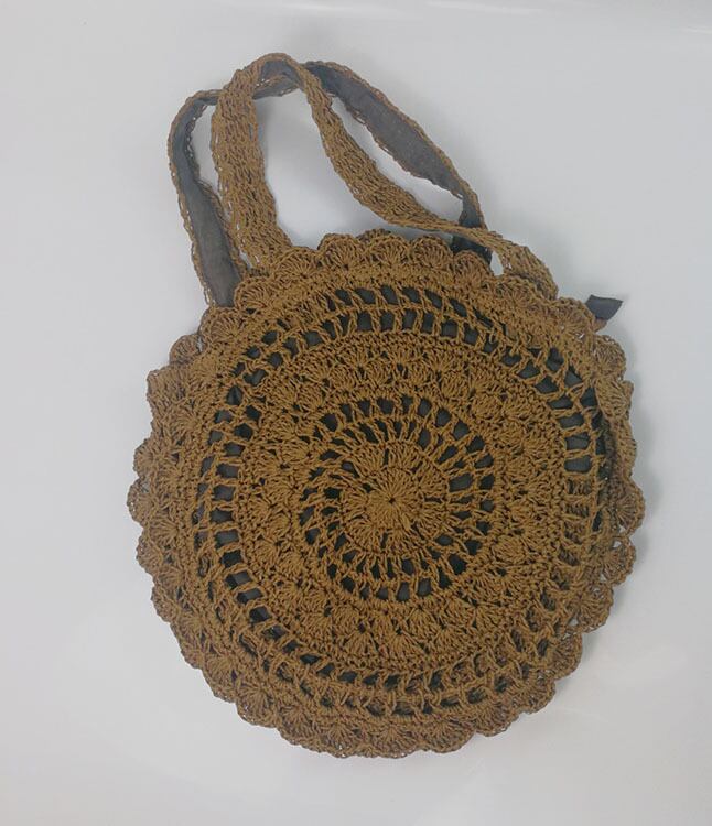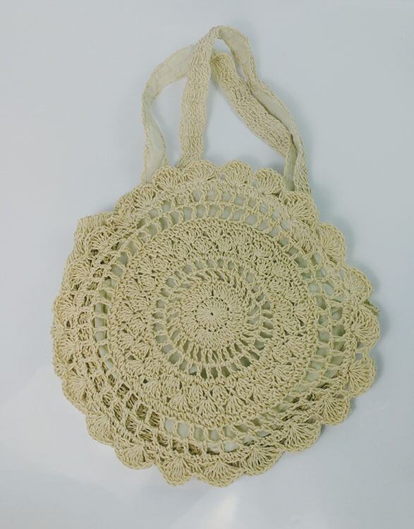 レディース カゴバッグ ストローバッグ 丸型 かぎ針 編み 手提げ 丸々可愛い 花柄 ファスナー 付