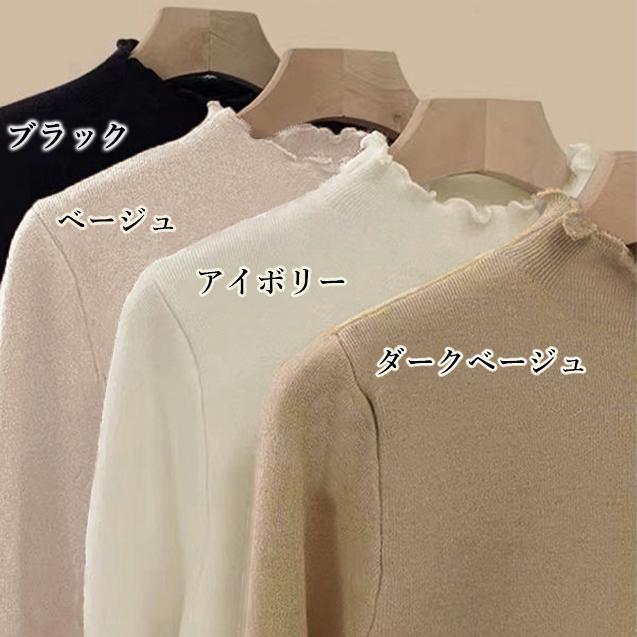 オフィスカジュアル 大人ニットインナー フリルネックニット