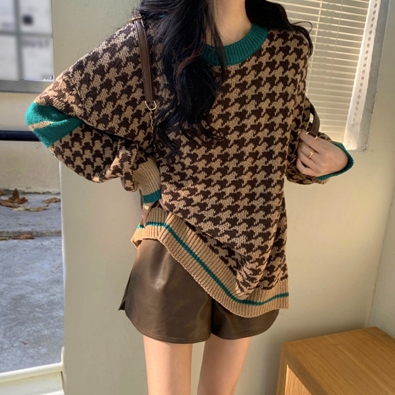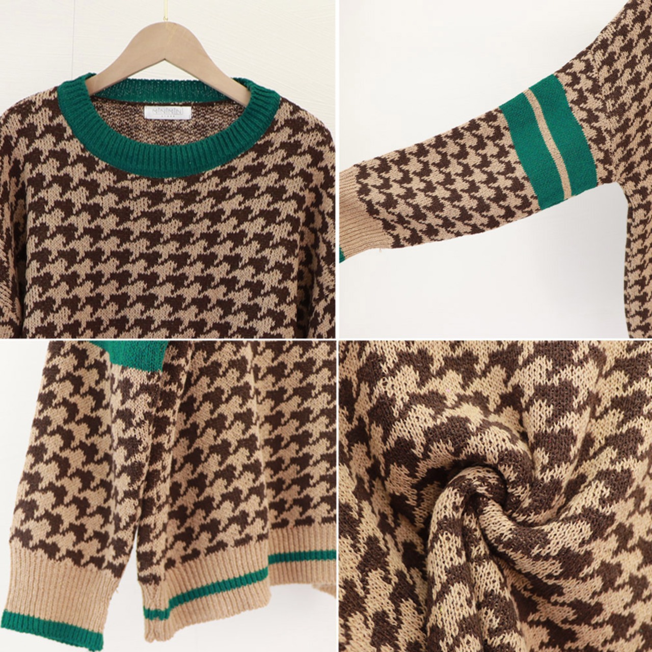 秋冬コーデに注目される千鳥格子柄レトロ風ニットトップス