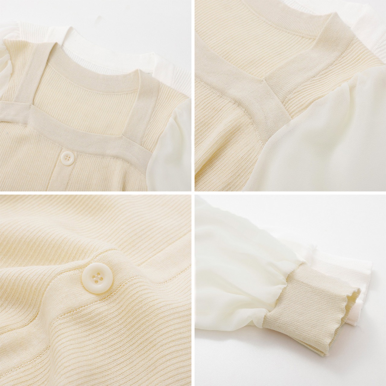 袖から覗く素肌がセンシュアルなシフォン切り替えシャツブラウス