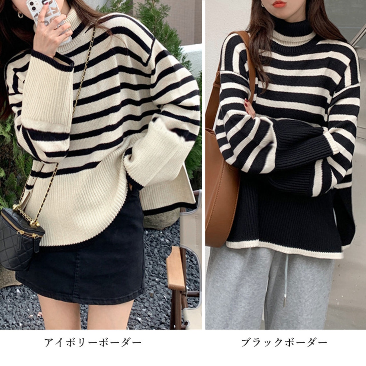 太めのボーダーがトレンド感たっぷりに着映えるニットトップス
