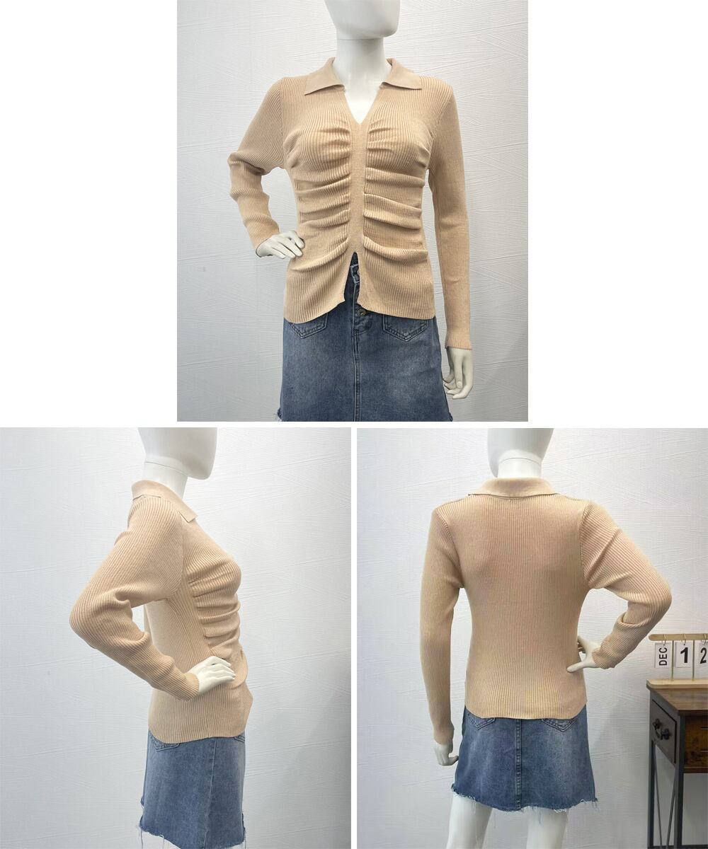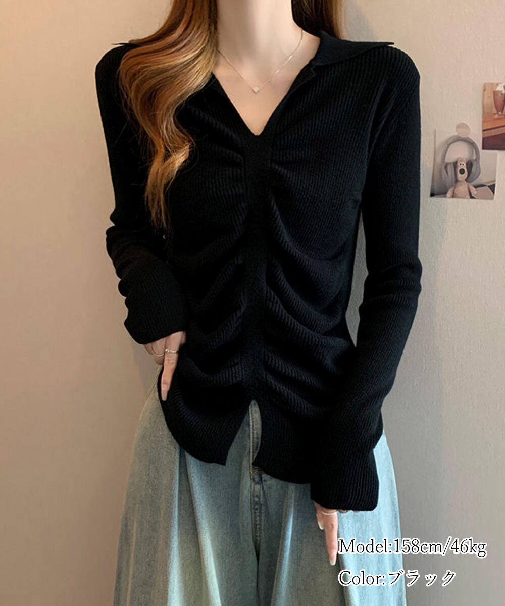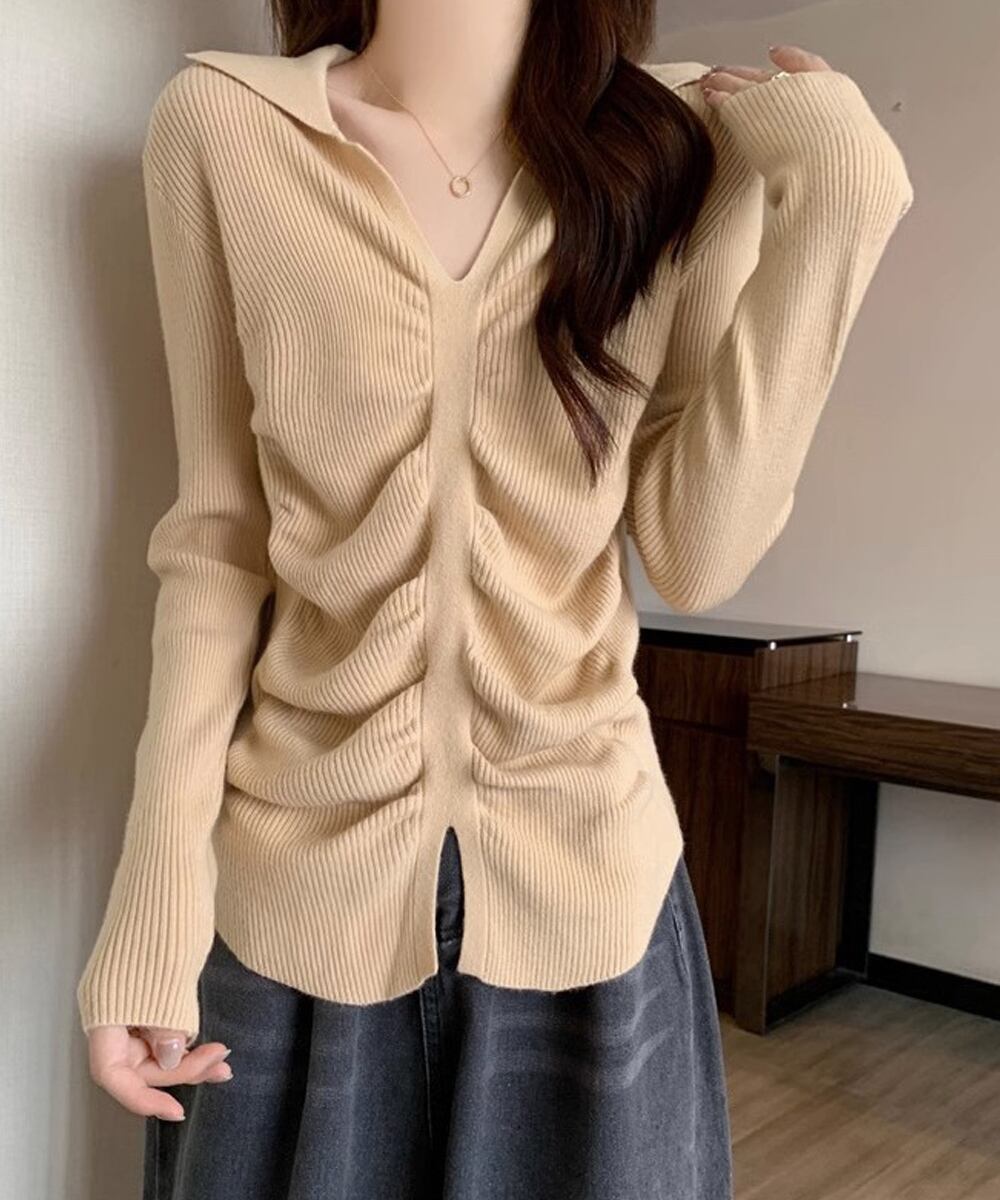 フロントギャザーニットトップス Vネック