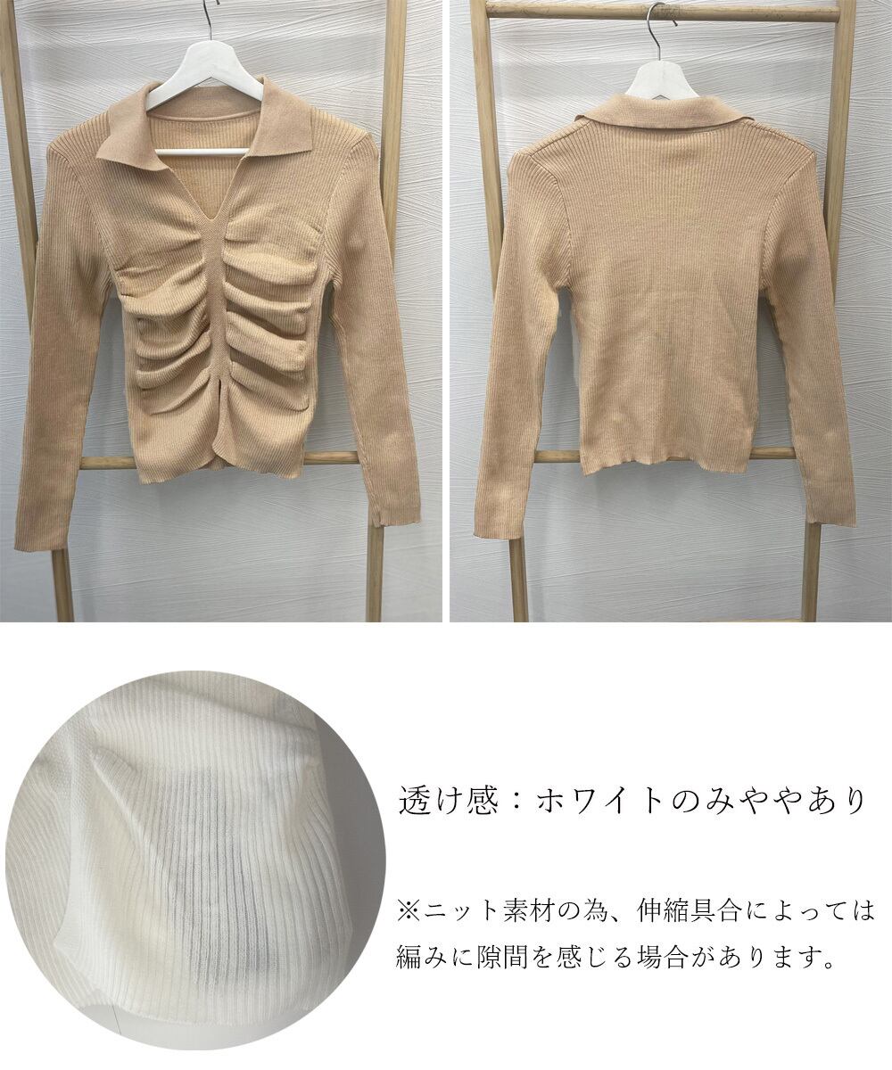 フロントのギャザーデザインが立体感を演出してくれるニットトップス