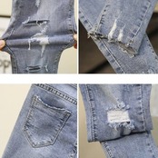 ダメージの効いたデザインが大人っぽくクールな印象を与えるウォッシュ仕様デニムパンツ