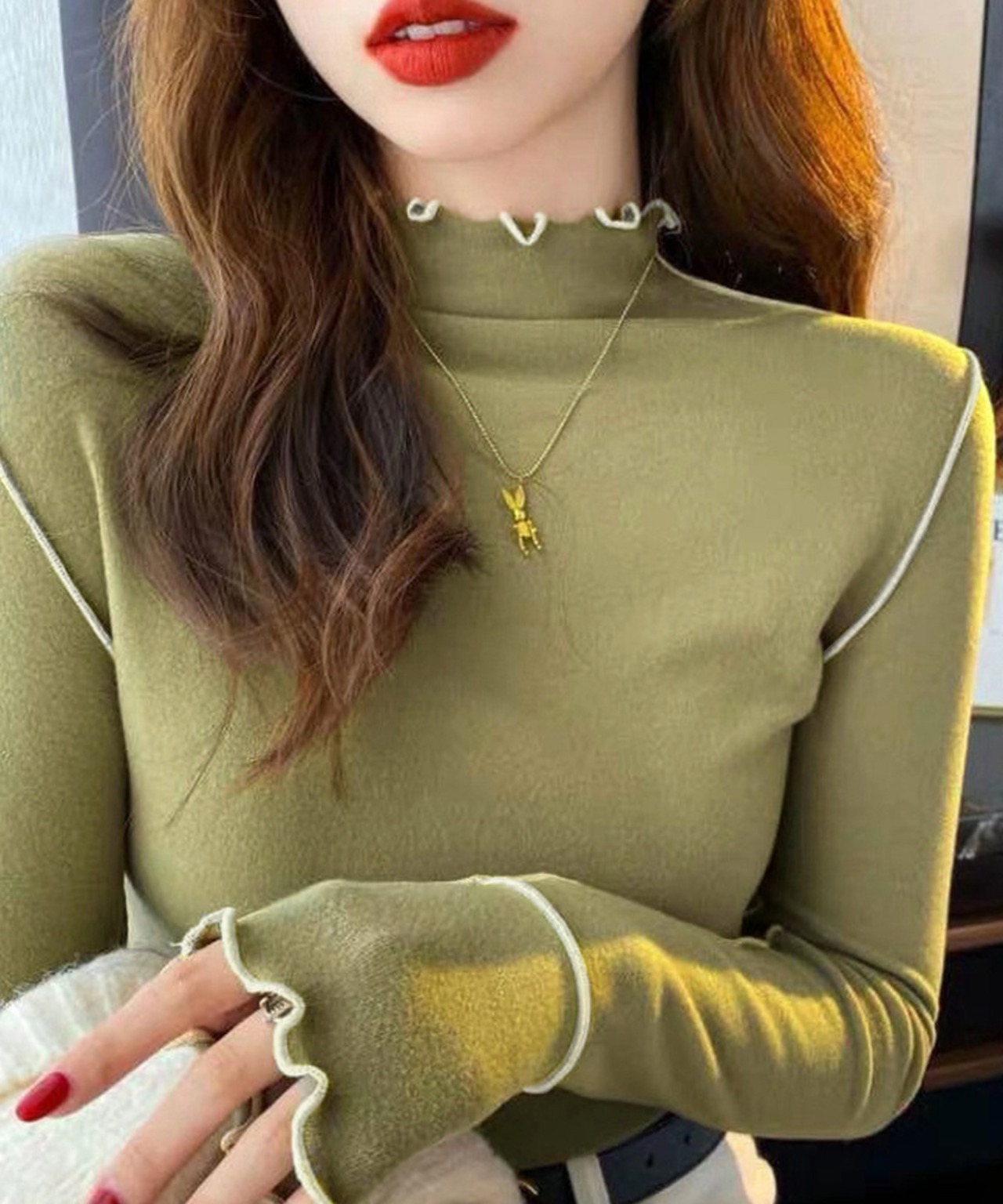シンプルながらも配色パイピングがポイント、トップス全体に洗練された雰囲気に
