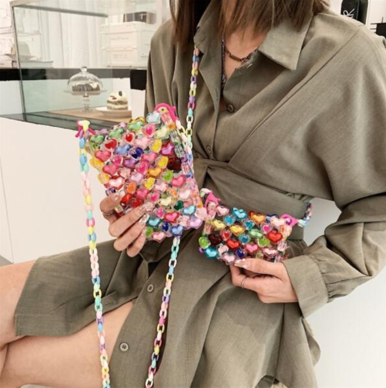 ファッション レディース かわいい ショルダーバッグ ビース 1番