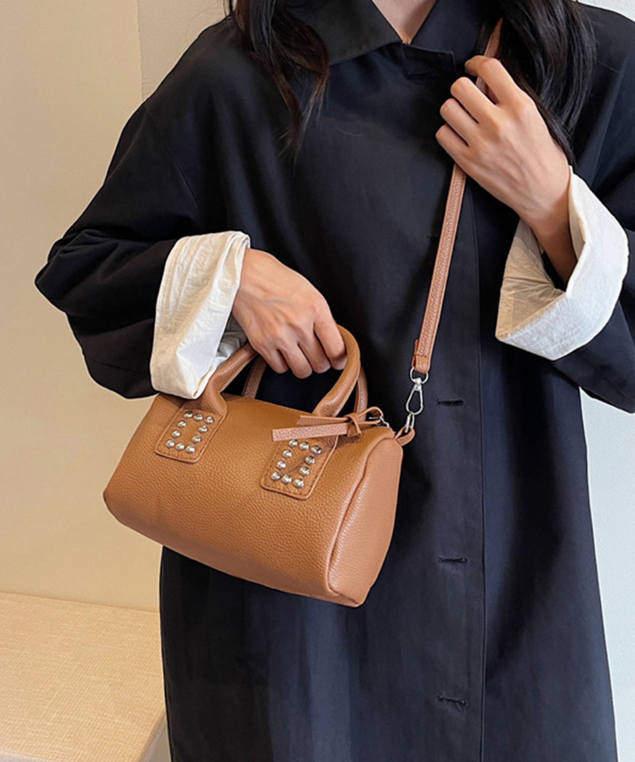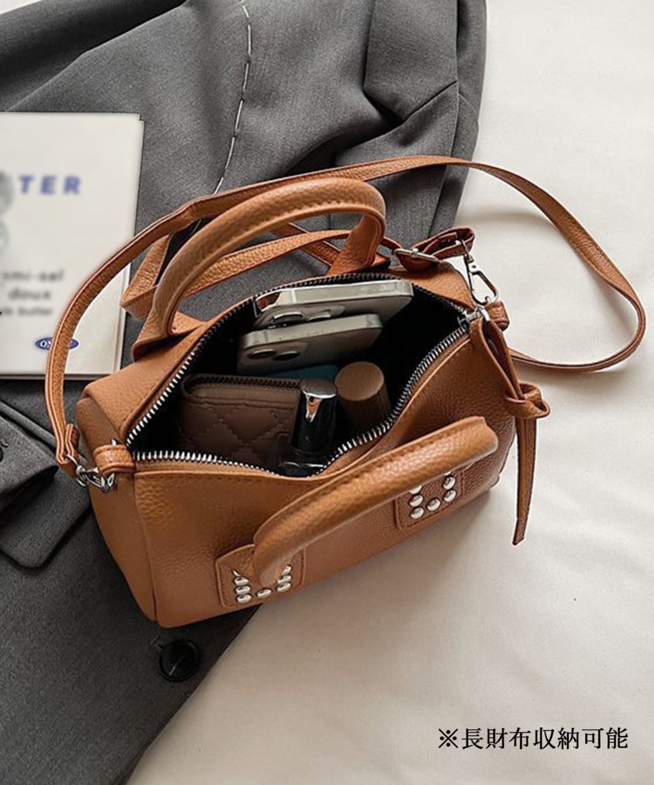 肩に掛けても手提げしてもOKな2way仕様、コーデの差し色アイテムとしてもおすすめ!