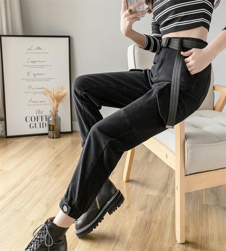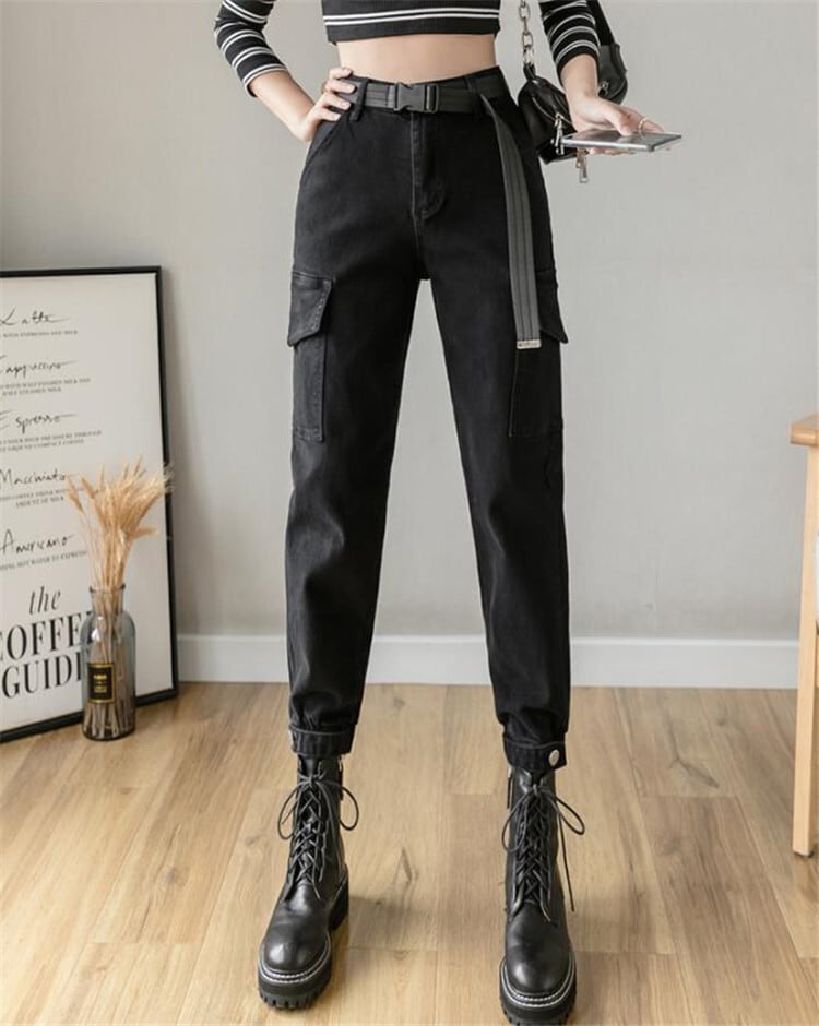 韓国の人気爆発 韓国ファッション デニム ストレート ハイウエスト カーゴパンツ