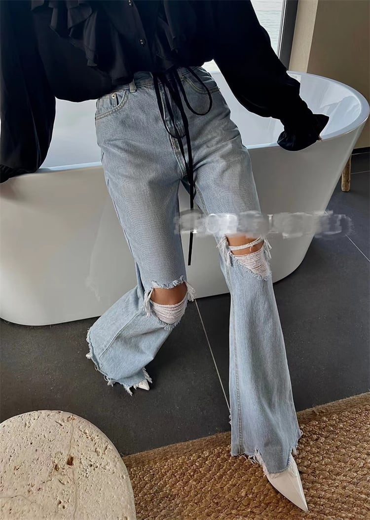 持つだけでお洒落度UP ジーンズ レディース ハイウエスト 破れ フレアパンツ デニムパンツ