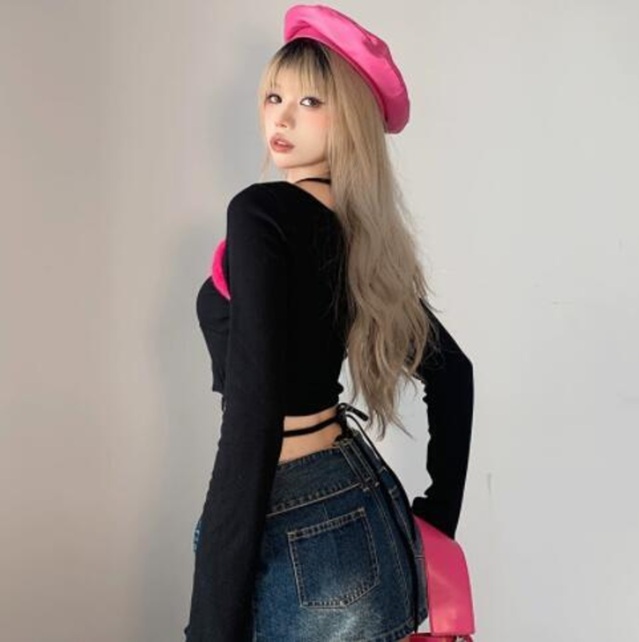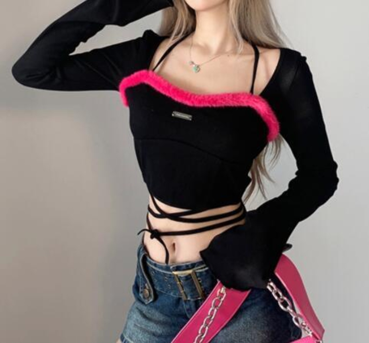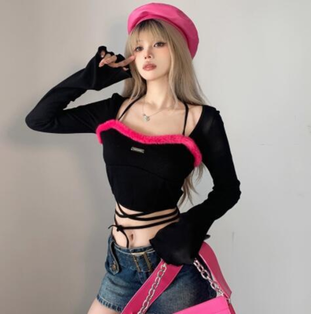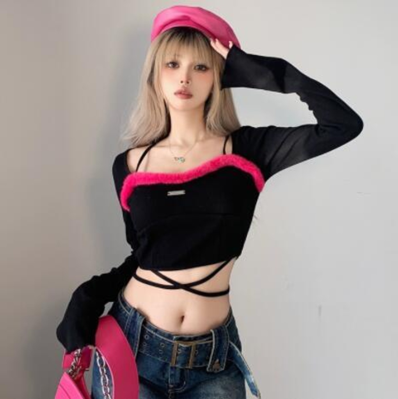 トップス Tシャツ スリム ダンス衣装 ベアトップ ショート丈