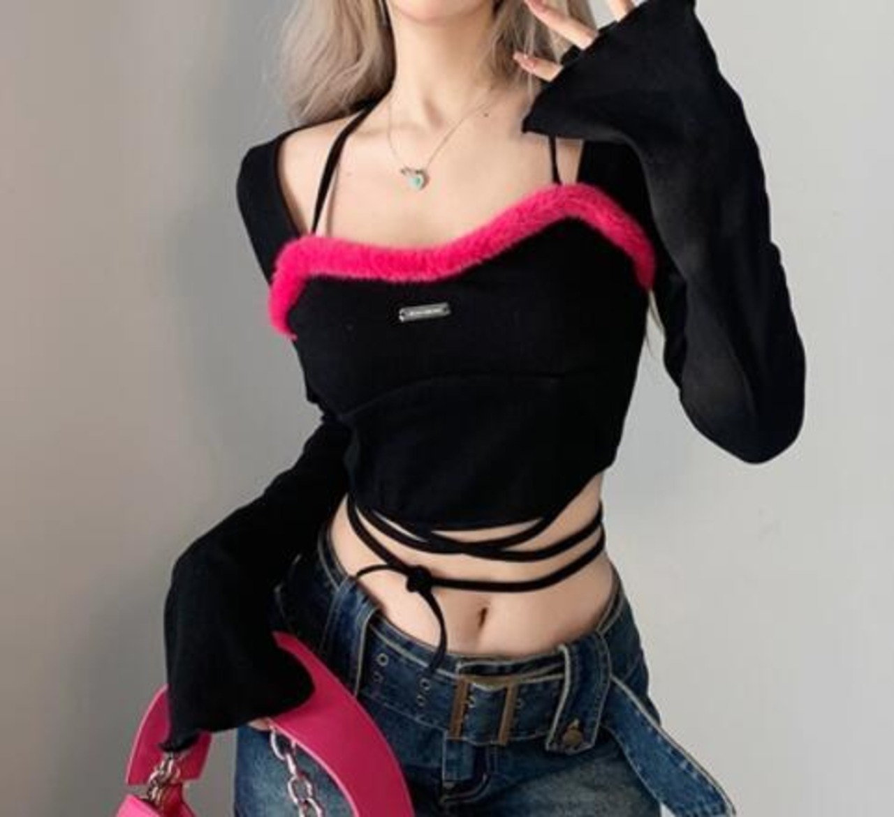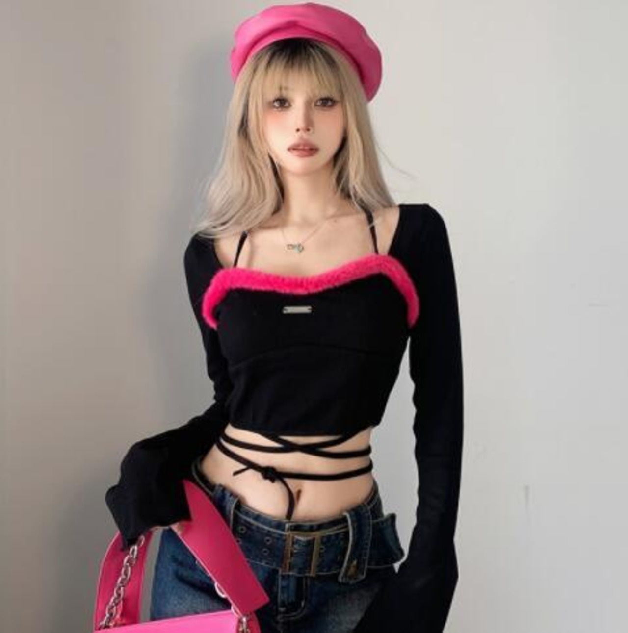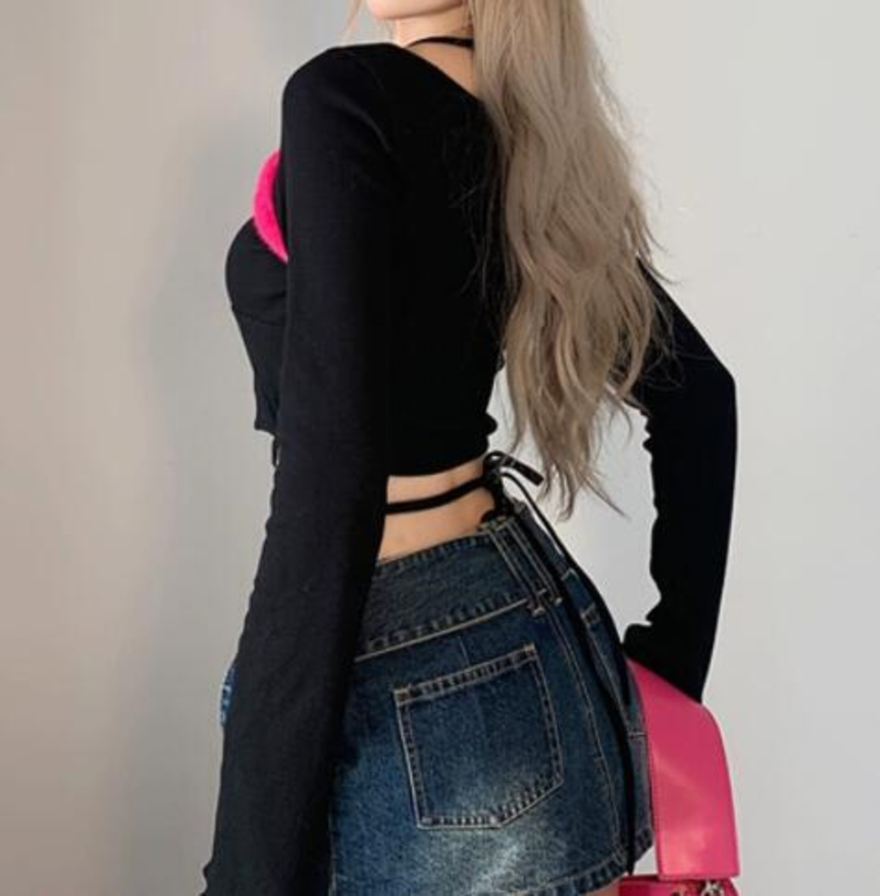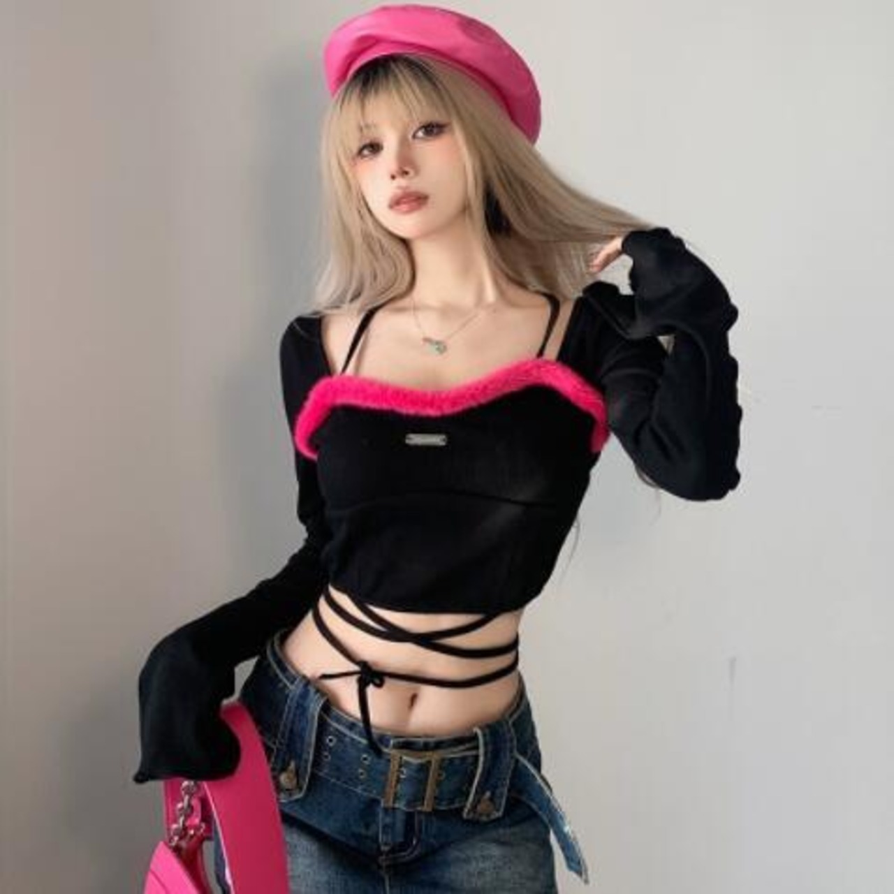 トップス Tシャツ スリム ダンス衣装 ベアトップ ショート丈