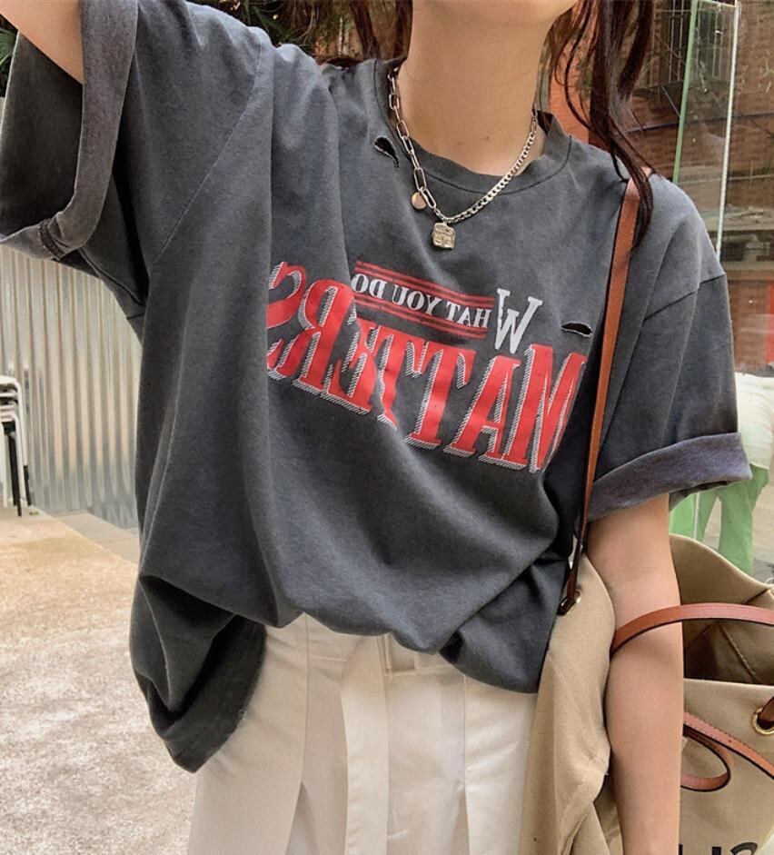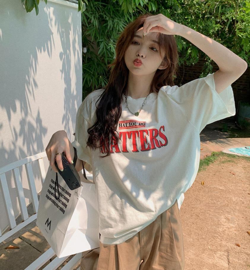 レディース 女 プリント 丸首 半袖 Tシャツ トップス インナー 2色