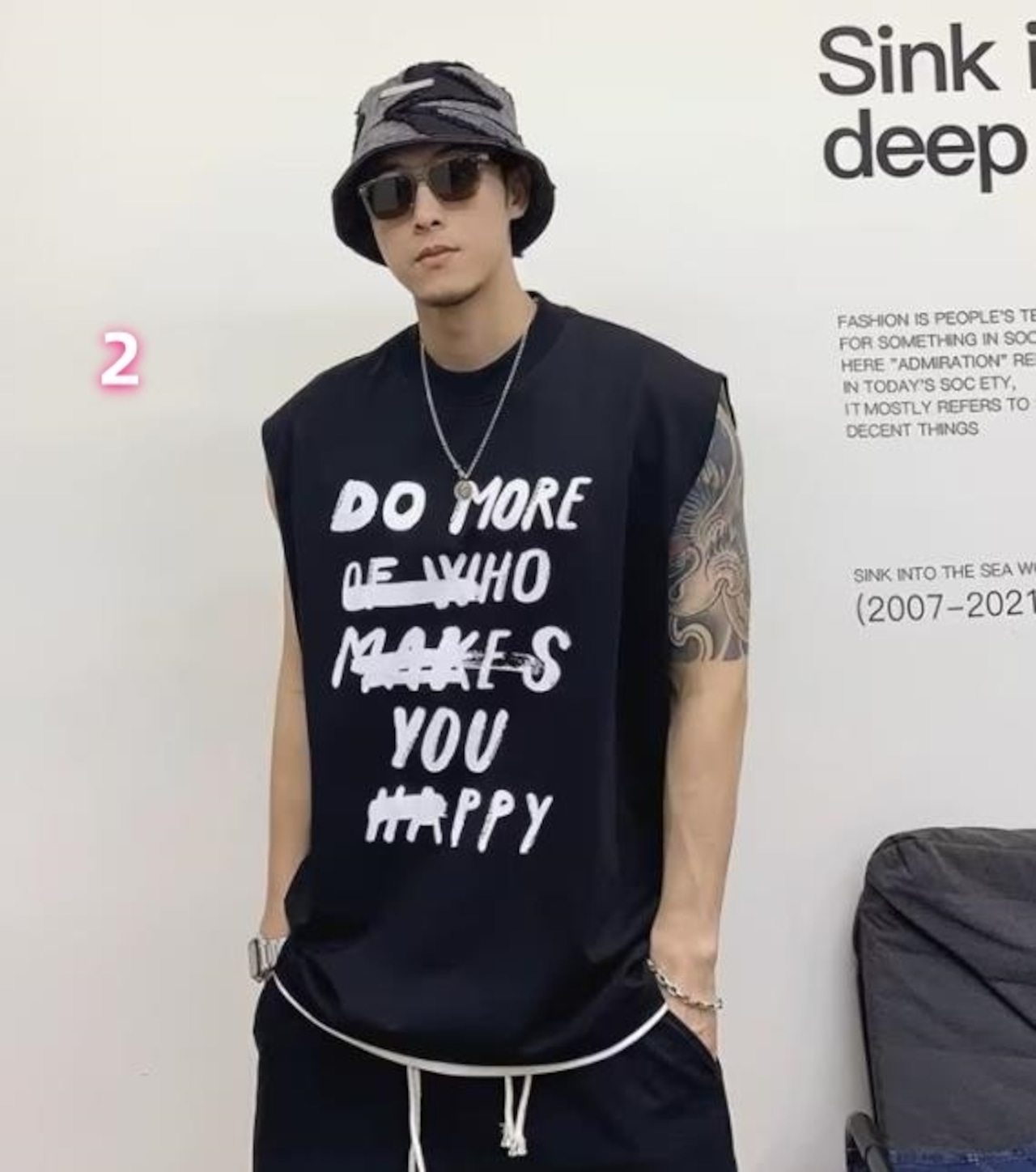 2カラー メンズ カジュアル 袖なし プリント 丸首 トップス Tシャツ タンクトップ